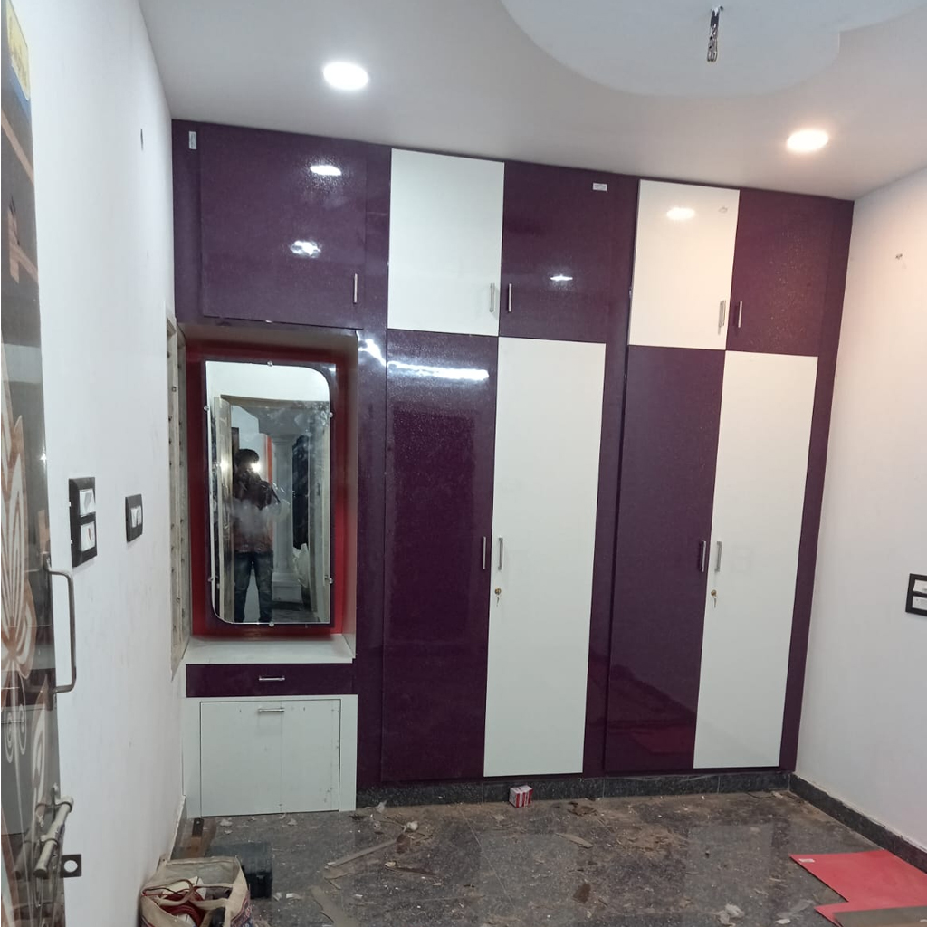 Our interior wood works include wardrobes, kitchen cabinets and custom storage solutions for modern living spaces.